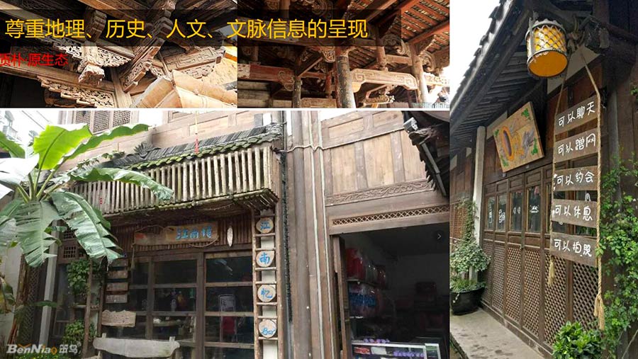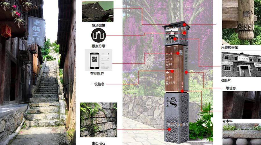 融合:維護古鎮(zhèn)盛水相應(yīng)的傳統(tǒng)風(fēng)貌,標(biāo)識融入環(huán)境;