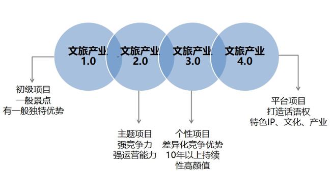 整體來看:1.0階段主要為一般景點(diǎn);2.0階段主題更加鮮明;3.0階段具有持續(xù)經(jīng)營(yíng)的高顏值特征;4.0已經(jīng)形成平臺(tái)化、IP化特點(diǎn)。