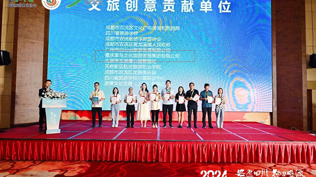 2024年5月17-19日,由中國(guó)旅游景區(qū)協(xié)會(huì)組織開展的“安逸四川 魅力雙流”第二屆旅游景區(qū)創(chuàng)意作品智慧分享大會(huì)暨雙流研學(xué)旅游產(chǎn)品推介會(huì)頒發(fā)了獲獎(jiǎng)作品。據(jù)了解,本次會(huì)議頒發(fā)了262個(gè)獲獎(jiǎng)作品,79個(gè)示范作品獎(jiǎng)、91個(gè)優(yōu)秀作品獎(jiǎng)、92個(gè)入圍作品獎(jiǎng)、52個(gè)文旅創(chuàng)意貢獻(xiàn)獎(jiǎng)。其中重慶笨鳥文化旅游發(fā)展集團(tuán)有限公司榮獲1個(gè)文旅創(chuàng)意貢獻(xiàn)獎(jiǎng)、1個(gè)示范作品獎(jiǎng)、3個(gè)優(yōu)秀作品獎(jiǎng)、1個(gè)入圍作品獎(jiǎng)。