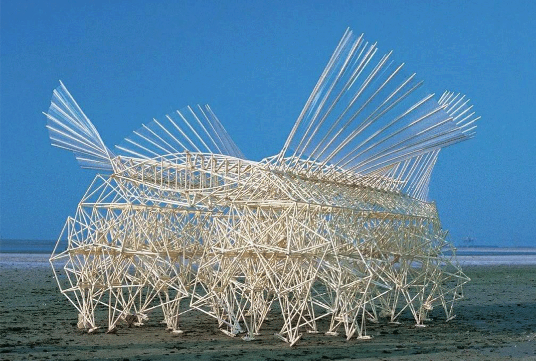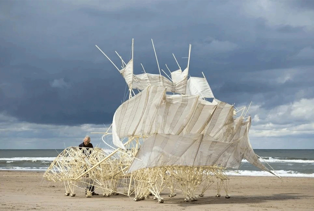 例如,荷蘭藝術(shù)家西奧·揚(yáng)·霍克(Theo Jansen)的“海灘動(dòng)物”(Strandbeest)系列就是一個(gè)經(jīng)典的可拆卸裝置藝術(shù)案例。這些由竹子和塑料制成的機(jī)械結(jié)構(gòu),不僅能夠在沙灘上行走,而且可以拆卸成較小的部件,方便藝術(shù)家進(jìn)行運(yùn)輸和維護(hù)。