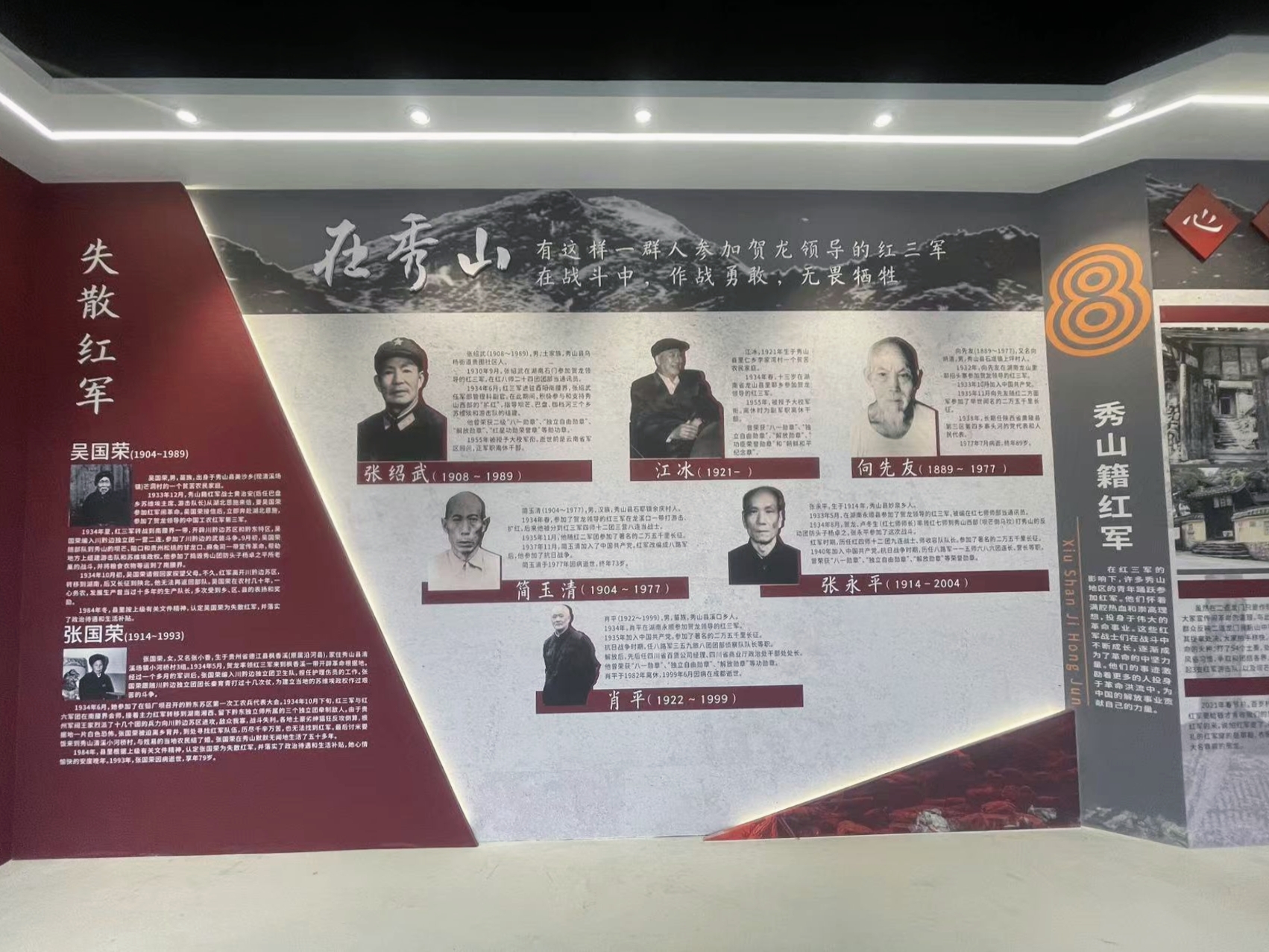 通過不斷的走訪與文旅委及政府相關(guān)文史工作者的交流,相關(guān)文獻資料的解讀,最終確定了壩芒紅色文化十大板塊內(nèi)容,結(jié)合前言與結(jié)語,分區(qū)塊呈現(xiàn),將壩芒紅色文化脈絡(luò)從背景到戰(zhàn)斗過程及主要人、物和后續(xù)發(fā)展娓娓道來。給人以系統(tǒng)化的文化呈現(xiàn),講述壩芒故事。