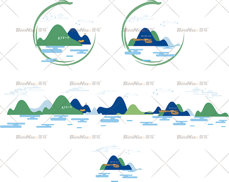 為了增強(qiáng)云陽龍缸景區(qū)形象的訴求力,使其內(nèi)涵與表現(xiàn)力更趨于完整,更易于識(shí)別。笨鳥文旅為其設(shè)計(jì)了象征圖形,象征圖形的組合變化能衍生出富于趣味的律動(dòng)感,能強(qiáng)化畫面視覺沖擊力,產(chǎn)生良好的誘導(dǎo)效果。