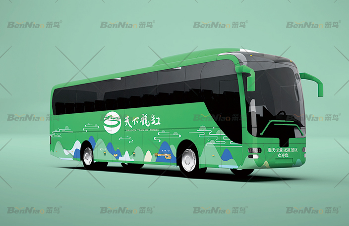 笨鳥團(tuán)隊(duì)從旅游運(yùn)營的角度出發(fā),設(shè)計(jì)時(shí)舍棄了傳統(tǒng)VIS的模板框架,側(cè)重于旅游區(qū)特有的應(yīng)用系統(tǒng)設(shè)計(jì),以云陽龍缸自身的視覺元素貫穿于“云陽龍缸”的全套VI體系中,旨在傳達(dá)一種“生態(tài)自然”的旅游景區(qū)形象。從辦公用品到媒體宣傳,從環(huán)境標(biāo)識(shí)到交通工具。