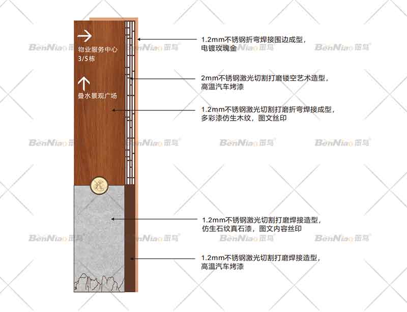 首先要考慮小區(qū)標(biāo)識牌的整體布局,根據(jù)小區(qū)的建筑環(huán)境、地理環(huán)境進(jìn)行規(guī)劃布局,其次標(biāo)識的設(shè)計與制作不僅要滿足易識別性與顯著性,還要考慮到造型與居住小區(qū)環(huán)境和協(xié)統(tǒng)一,突出其特色,小區(qū)標(biāo)識牌不僅要注重其功能的實現(xiàn),還要考慮安裝位置和尺寸。那么小區(qū)的標(biāo)識標(biāo)牌包括以下幾部分: