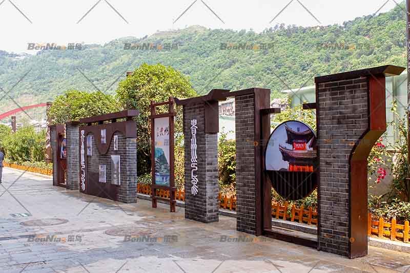 笨鳥文旅緊跟時代步伐,關(guān)注人民的精神文化生活,以文化帶空間建設(shè)為抓手,樹立文化自信,建設(shè)文化強(qiáng)國。在大力推進(jìn)文化建設(shè)的同時也重視空間的美觀性,將文化作為輸出內(nèi)容,將藝術(shù)作為空間載體,笨鳥文旅以切合項(xiàng)目地文化、符合空間美學(xué)的設(shè)計(jì)手法,因地制宜,設(shè)計(jì)施工完成了一系列的文化墻設(shè)施,幫助項(xiàng)目地推廣文化,將美的視覺享受與文化內(nèi)涵疊加,滿足人民的精神生活需求和美好生活期待。